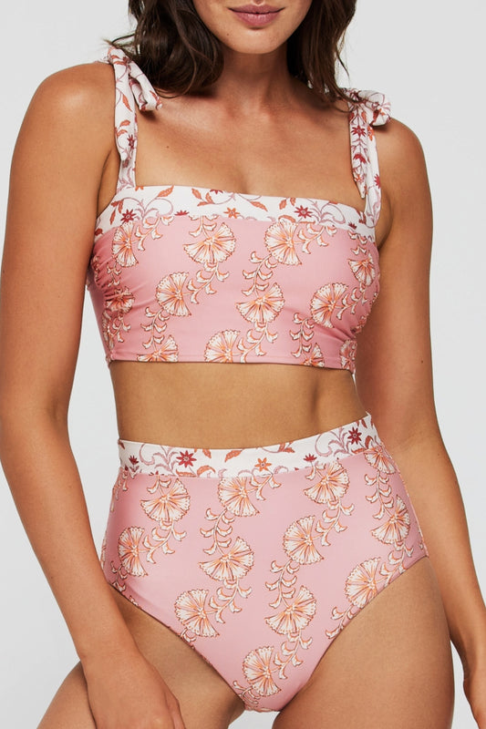Becca Tie Strap Two-Piece Bikini Top in Coral Cove Bouquet - FINAL SALE