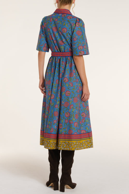 Alessia Dress Belted Tie Midi Dress in Budding Blues