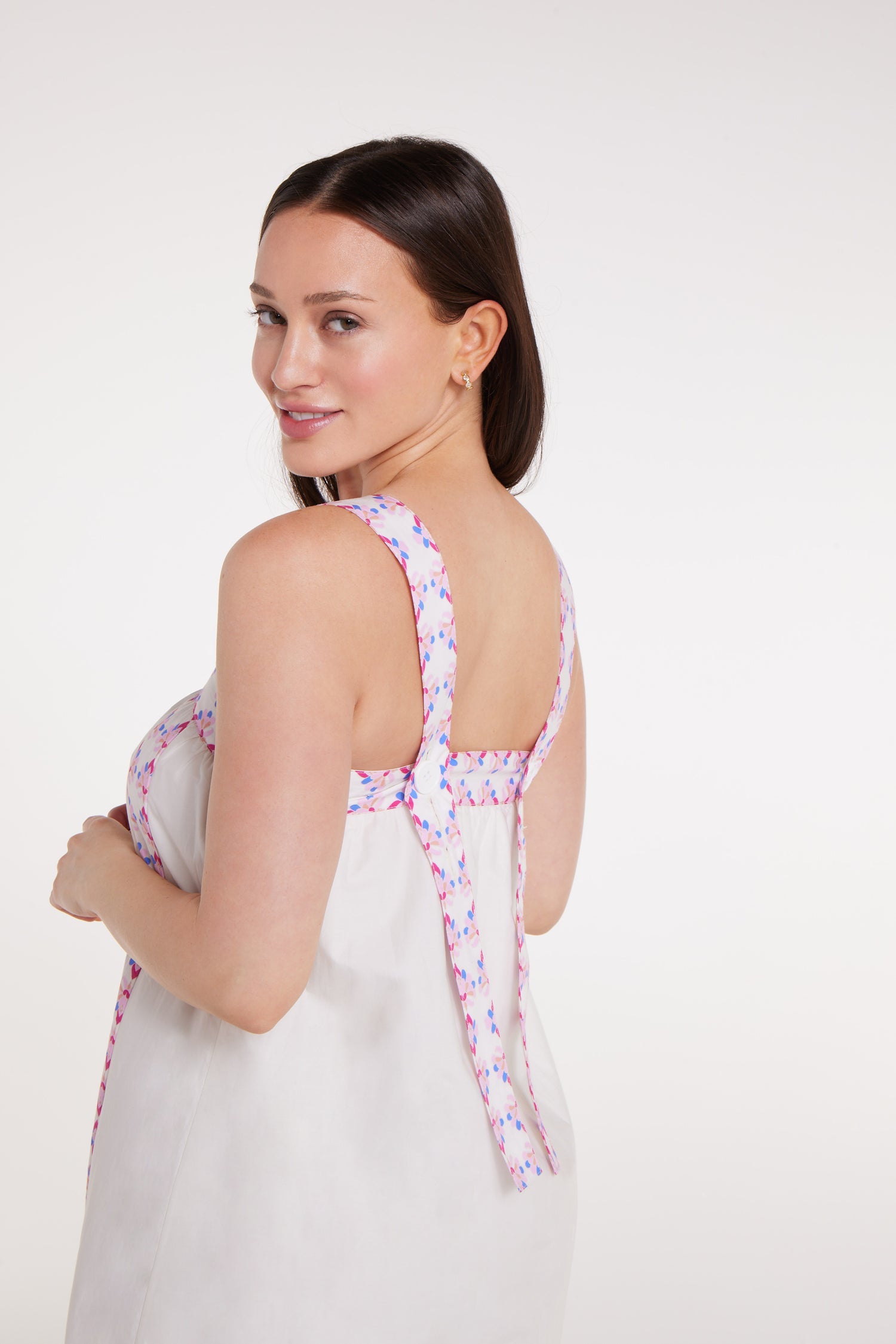 • Graceful Garlands Trim: Featuring a charming pink and periwinkle garland-inspired print along the straps and neckline for a soft, feminine accent.