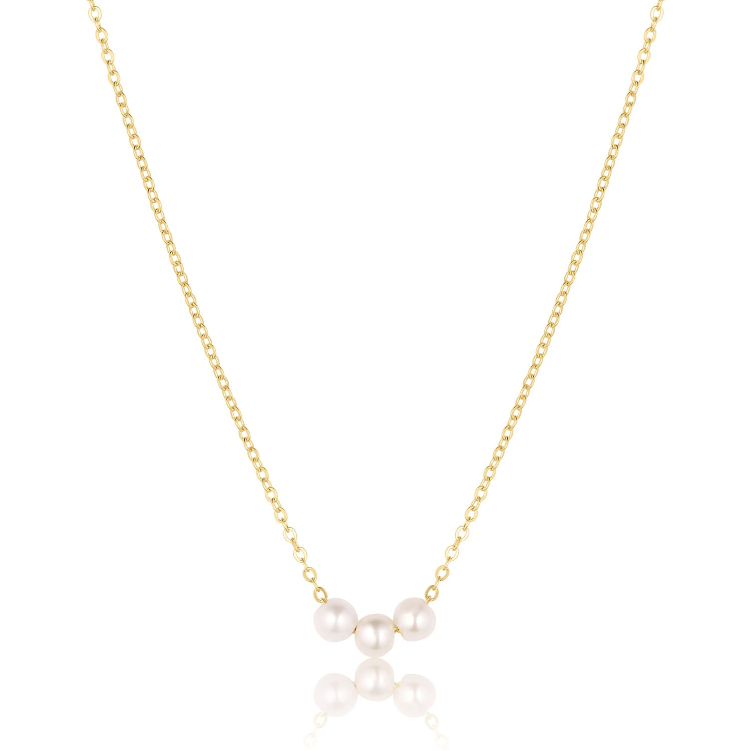 - 14k Gold Filled chain with three floating tiny Freshwater Pearls