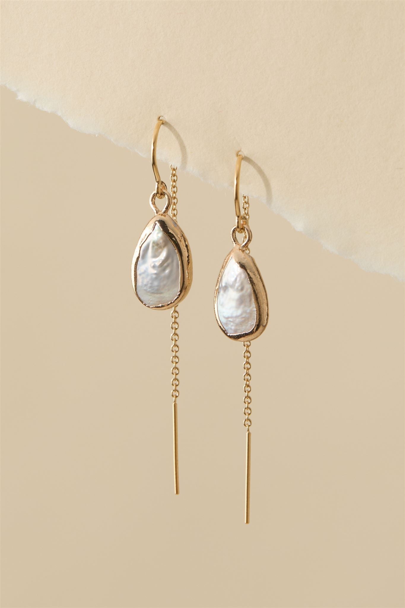 - 14k Gold Filled threaders with Gold Plated bezel teardrop Baroque Pearls