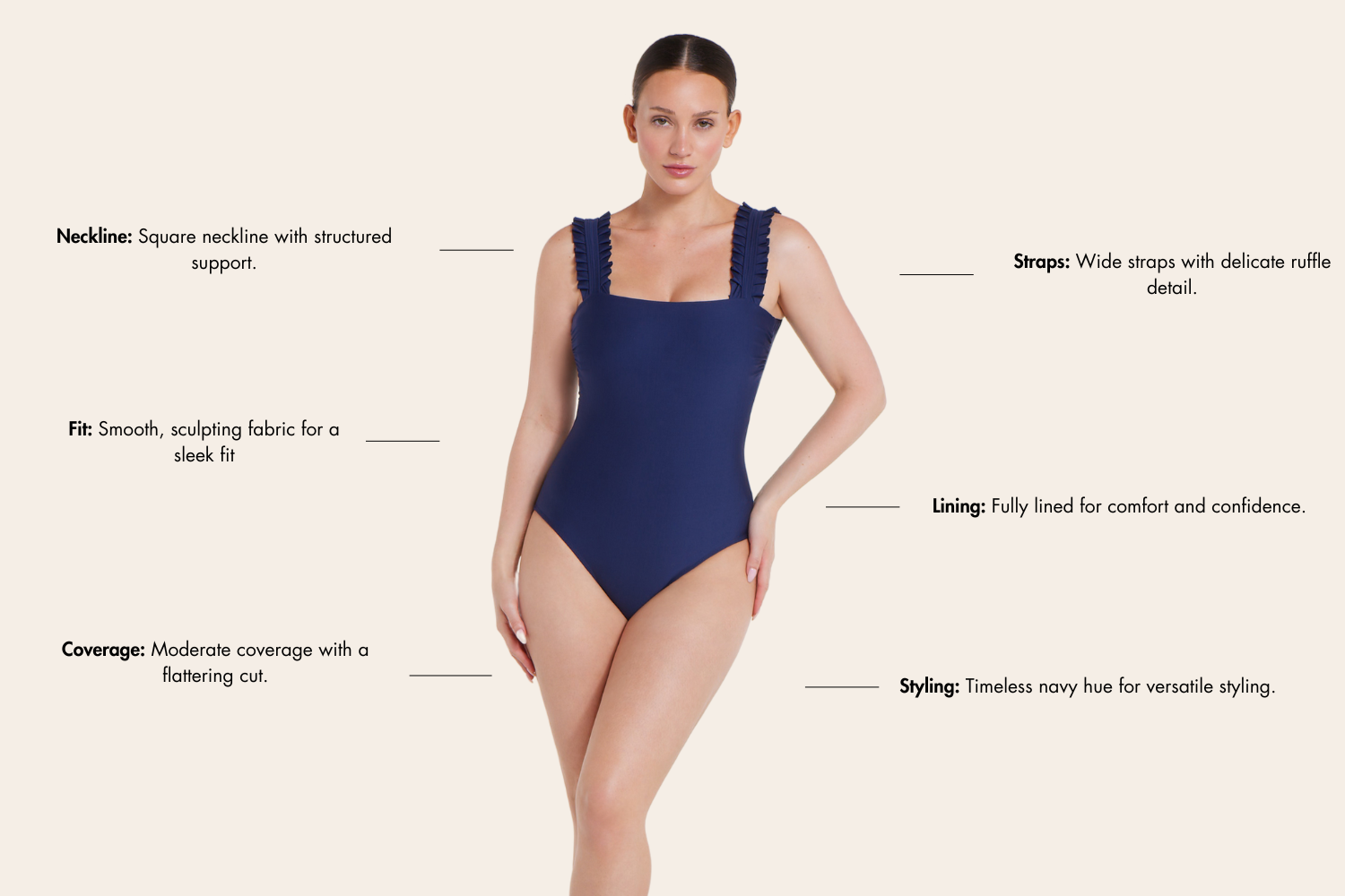 • Square Neckline: Structured support for a polished and elegant look