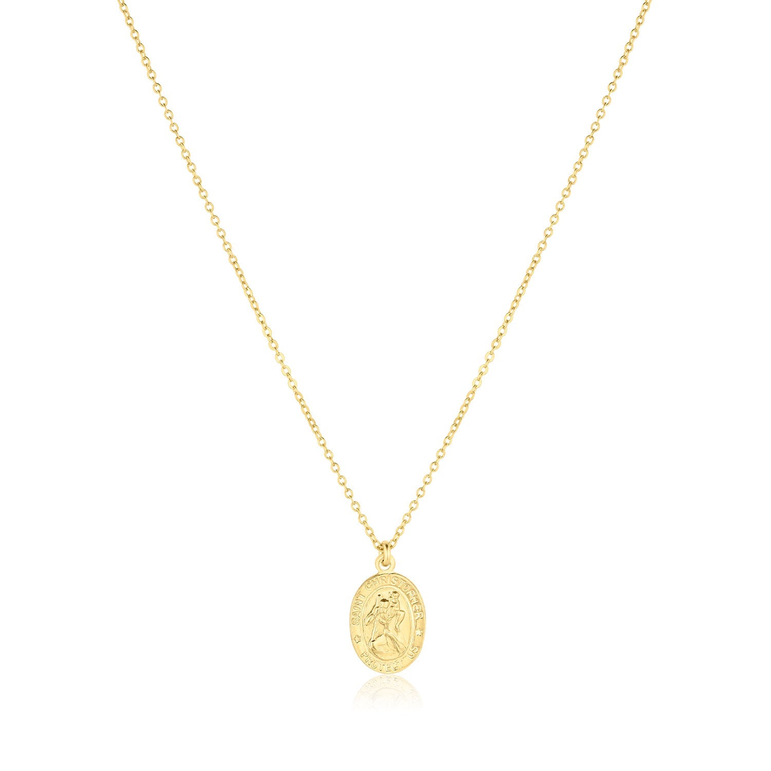 - 14k Gold Filled chain with 14k Gold Filled oval 9x12mm Saint Christopher pendant