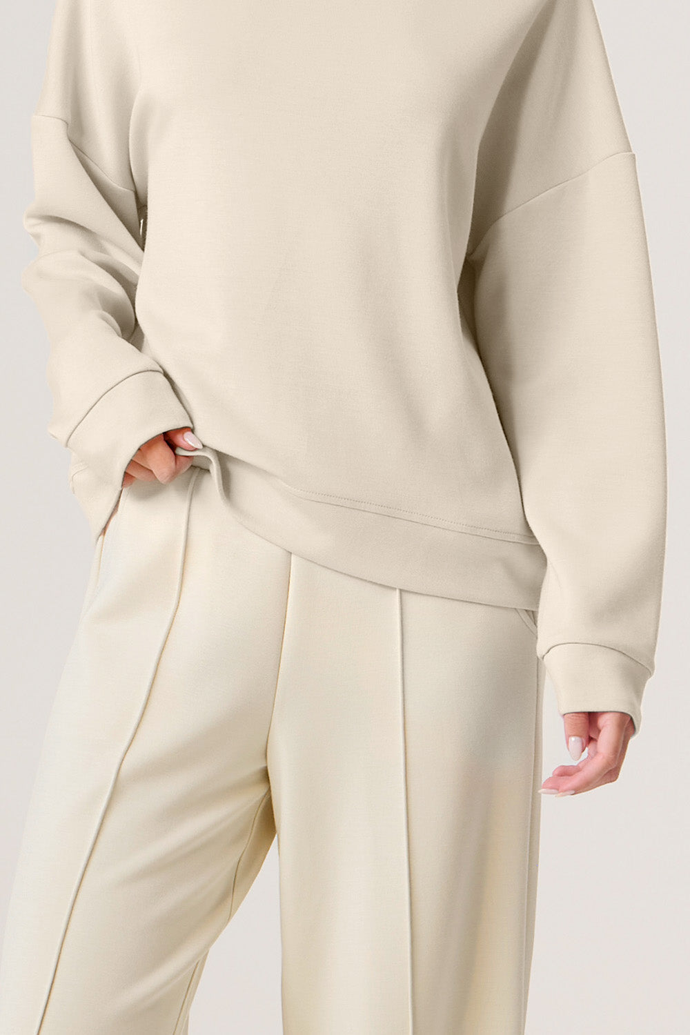 Easygoing meets elevated. The Getaway Top in taupe is crafted from our buttery-soft scuba knit for a sleek feel with just the right amount of stretch. Designed with a mock neckline, relaxed fit, and clean lines, it brings understated sophistication to effortless comfort. Soft and versatile, this neutral hue is made for easy styling—perfect for layering, lounging, or unwinding between destinations.