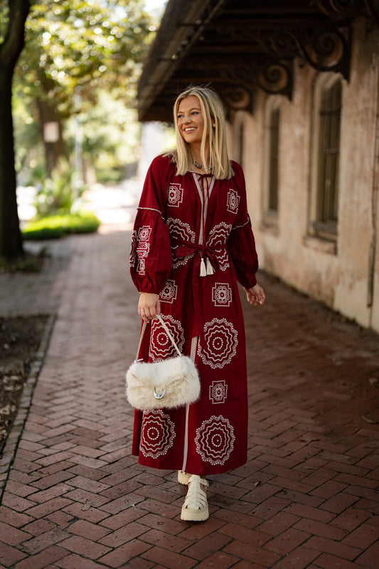 Crimson & White Caftan by TELA Mercantile