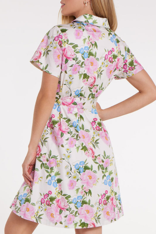 Francesca Collared Belted Maxi Dress in White Floral - FINAL SALE
