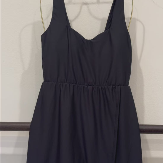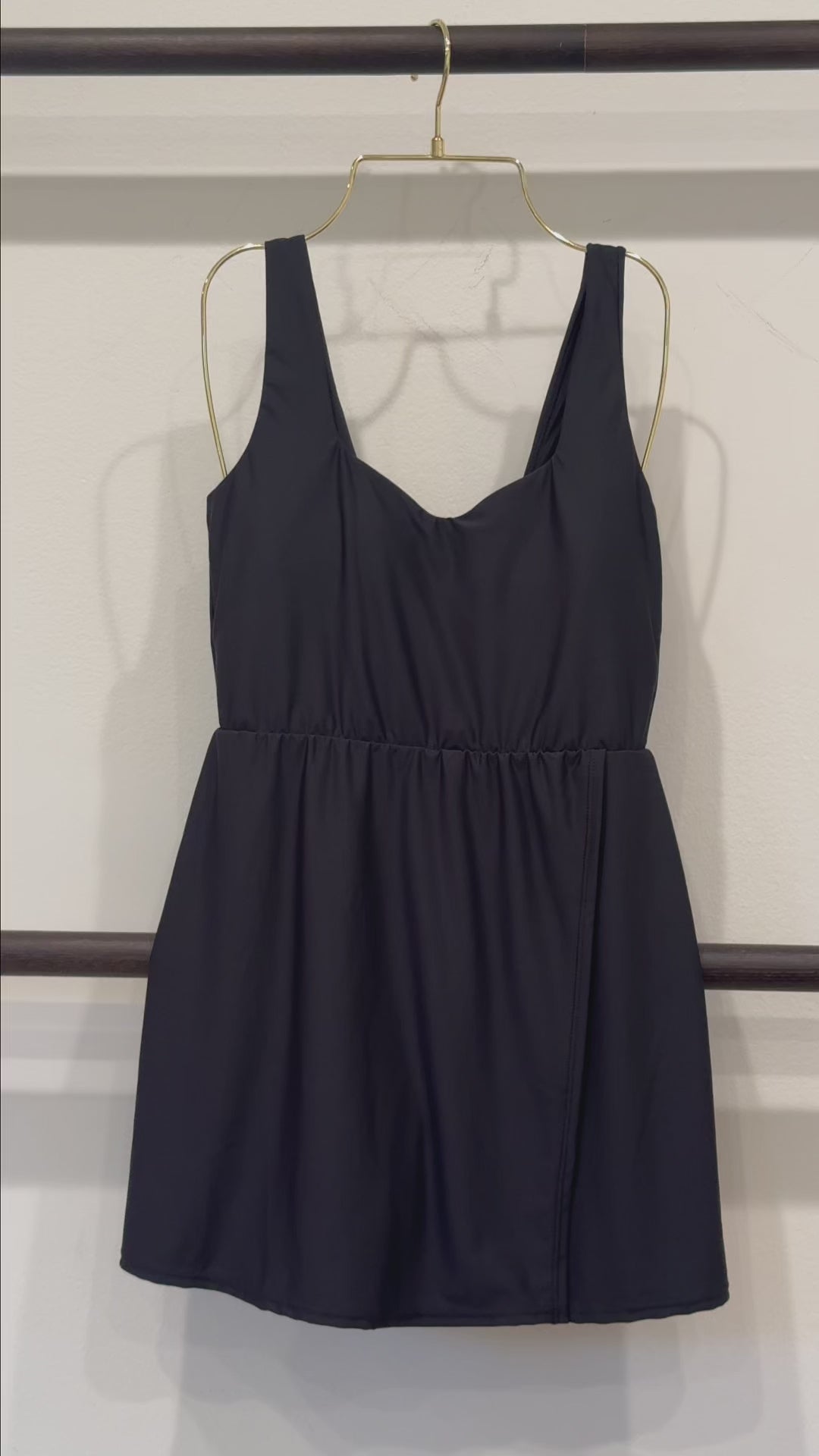 The soft skirt adds movement and femininity, while the wide straps provide a sporty-chic finish.
