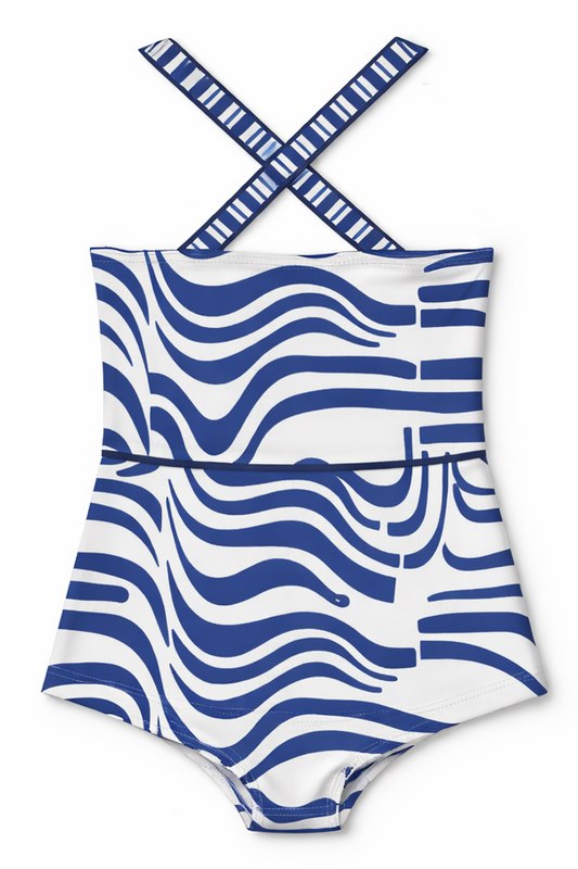Little Brit Tie Strap One-Piece Swimsuit in Blue Tile