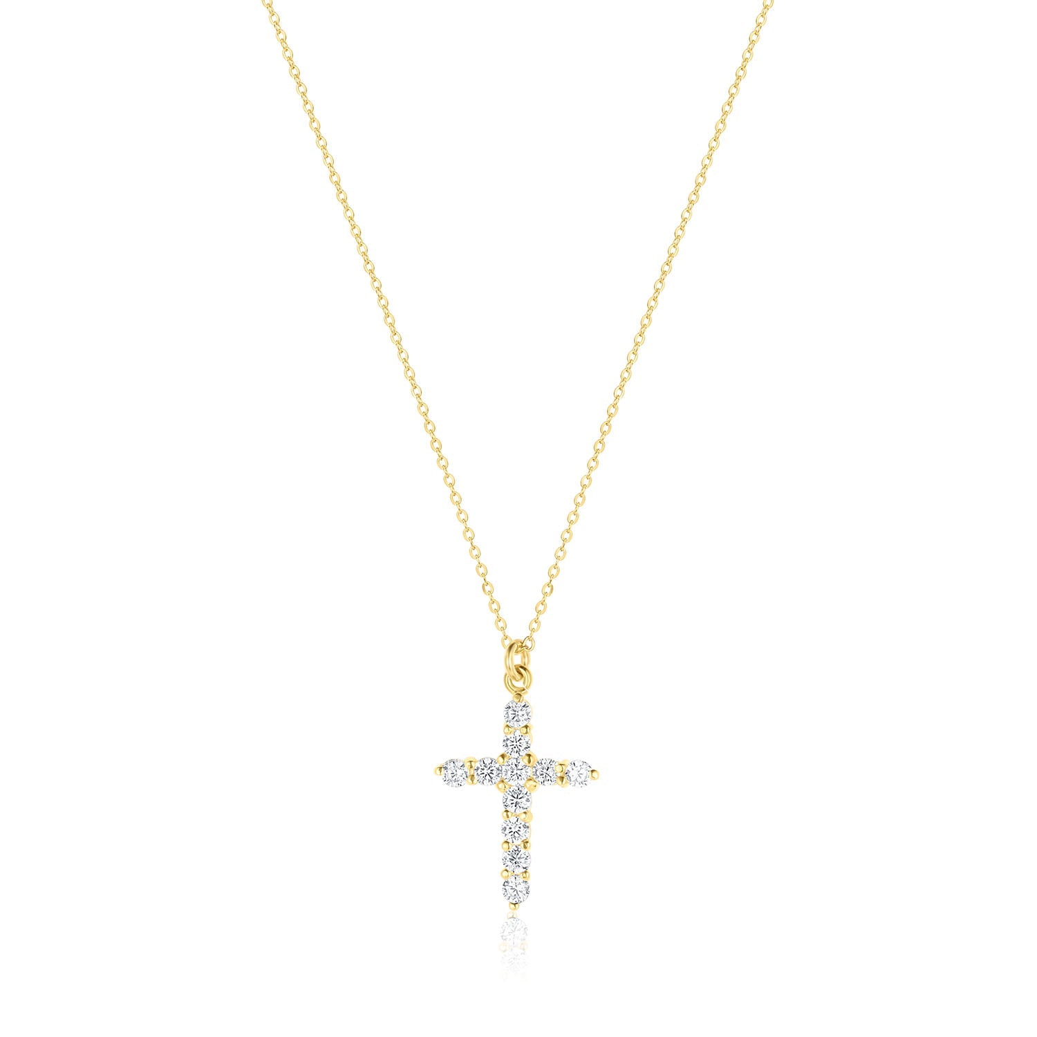 - 14k Gold Filled chain with Gold Vermeil 14x19mm Cubic Zirconia cross charm