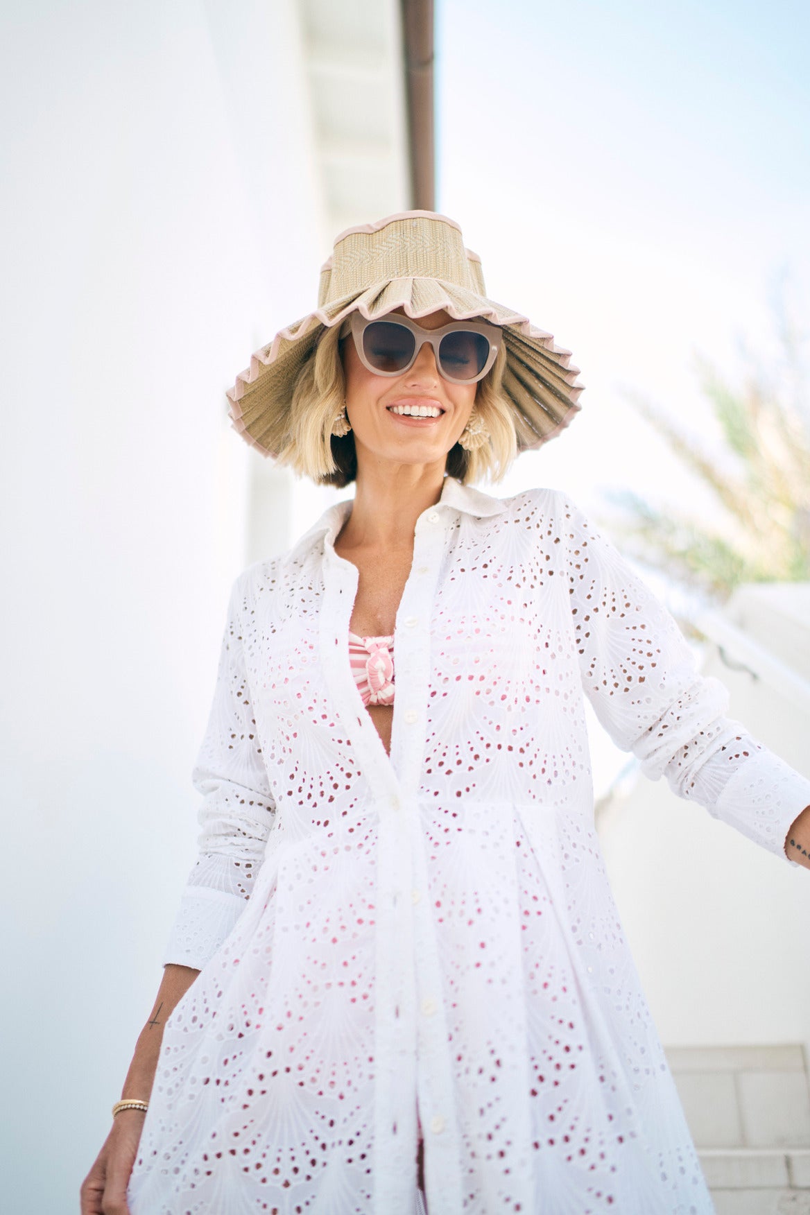 Light, airy, and effortlessly refined, Birdie is your warm-weather go-to. With a breezy silhouette and button-down front, this Meadow Whisper beauty is tailored to feel polished yet relaxed. The crisp collar and cuffed sleeves nod to timeless style, while the flowing skirt moves with ease. Finished with a soft re-moveable slip for breathable comfort, Birdie captures the essence of easy summer elegance.