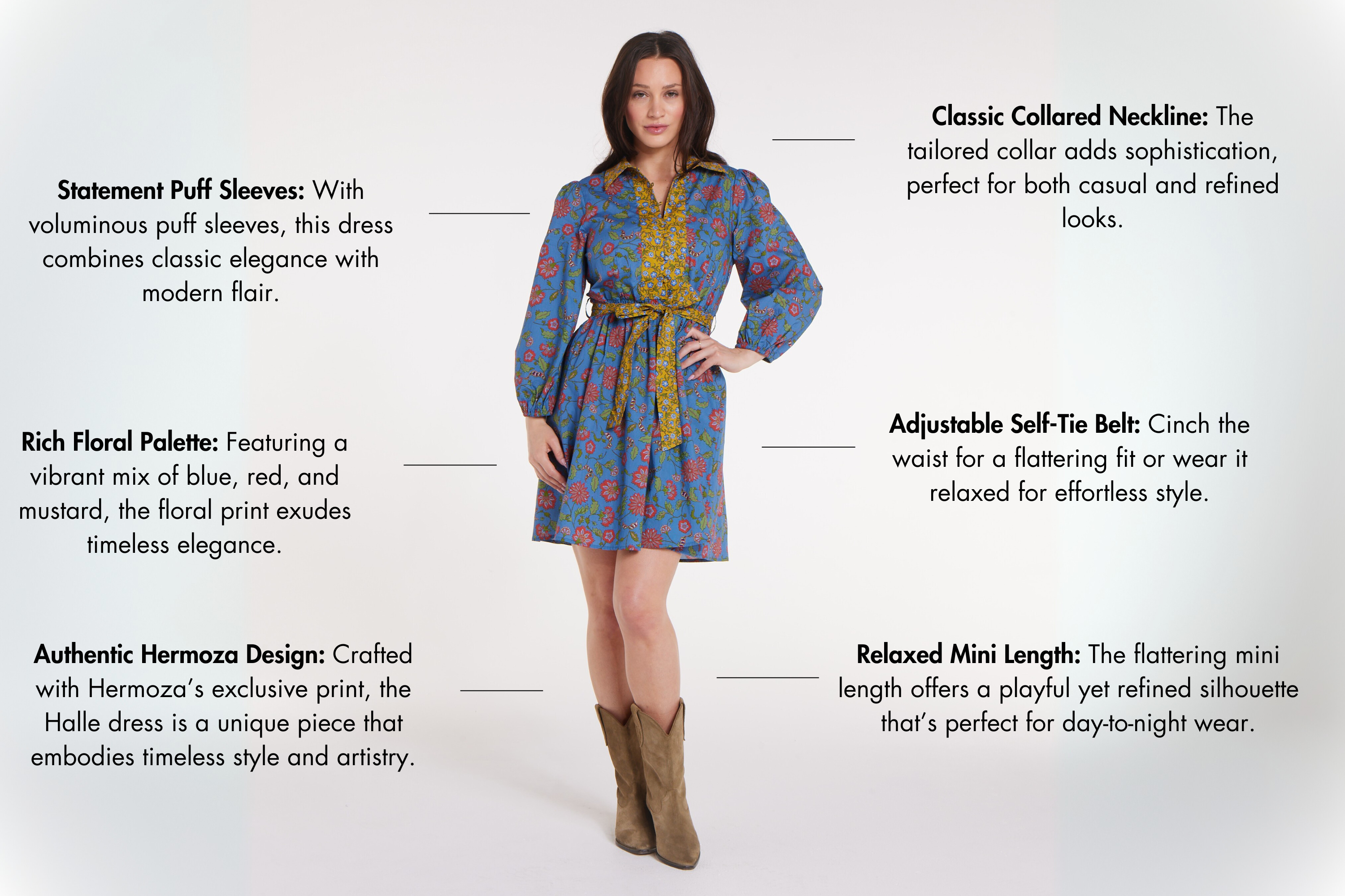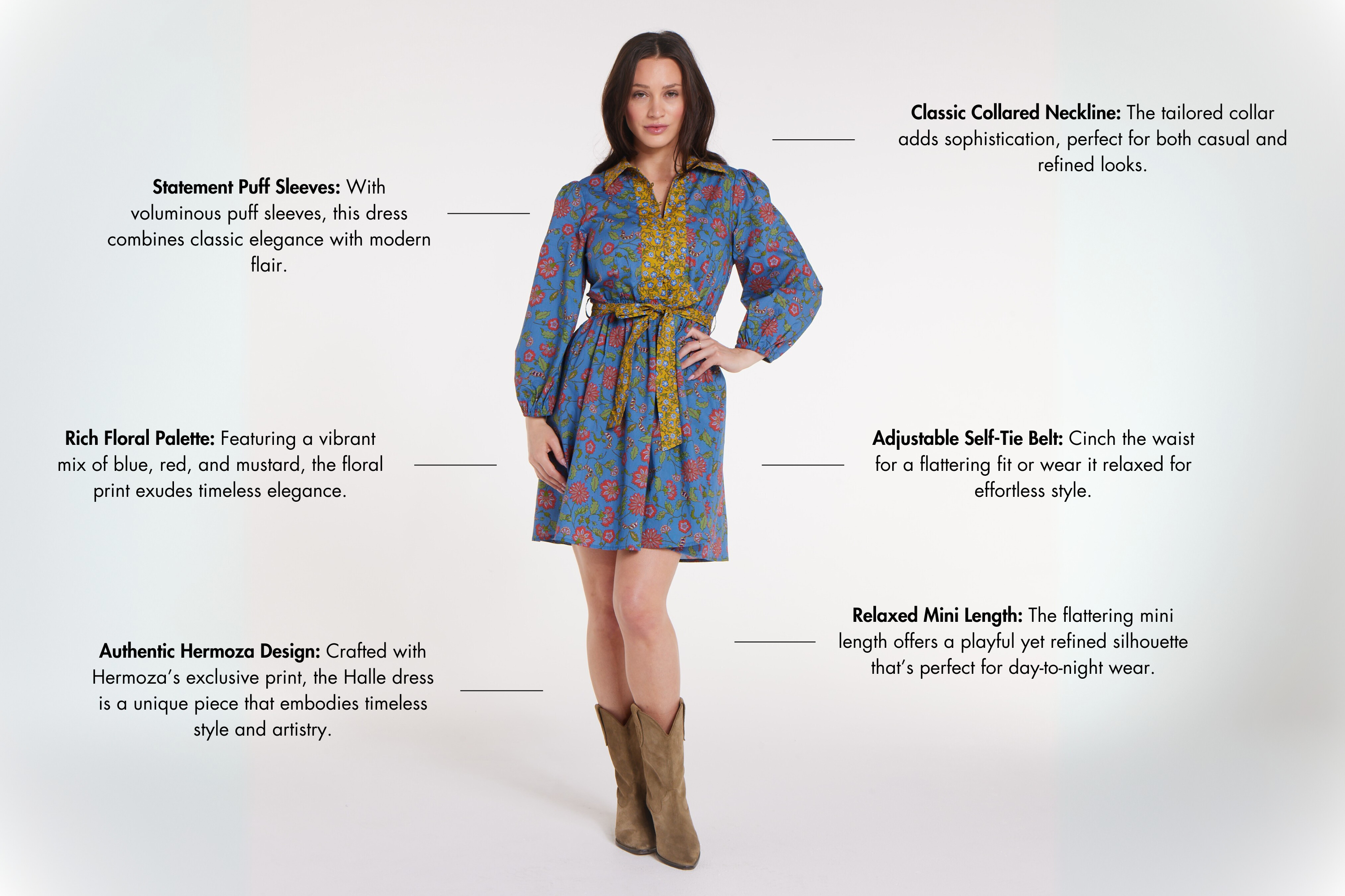 For fall, layer the Halle Mini Dress with a cropped denim or suede jacket and pair it with ankle boots for a cozy, casual vibe. Add a felt wide-brim hat and a crossbody bag to complete the look.