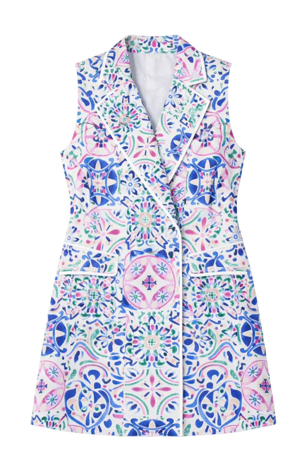 Crafted with a tiled print in beautiful mosaico hues of white, pink, green, blue, and purple, this one-of-a-kind dress is sure to turn heads in any setting. Make a statement with the Martina Dress and make memories that will last a lifetime.