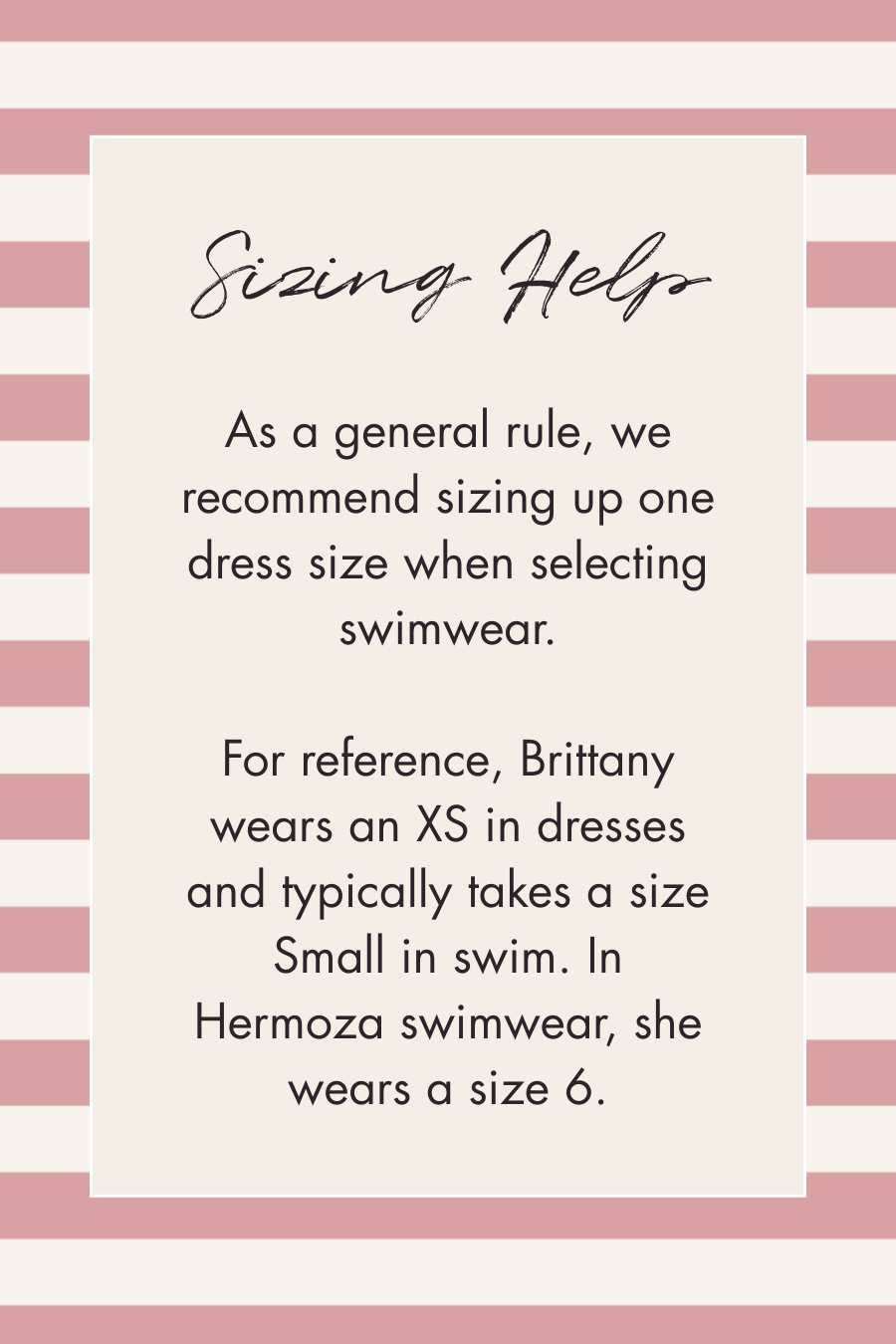 Brittany is a size small in swim and is wearing a Hermoza size 6.