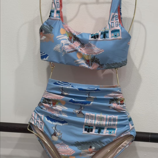 Tod High Waisted Ruched Two-Piece Swimsuit Bottom in Coast to Coast