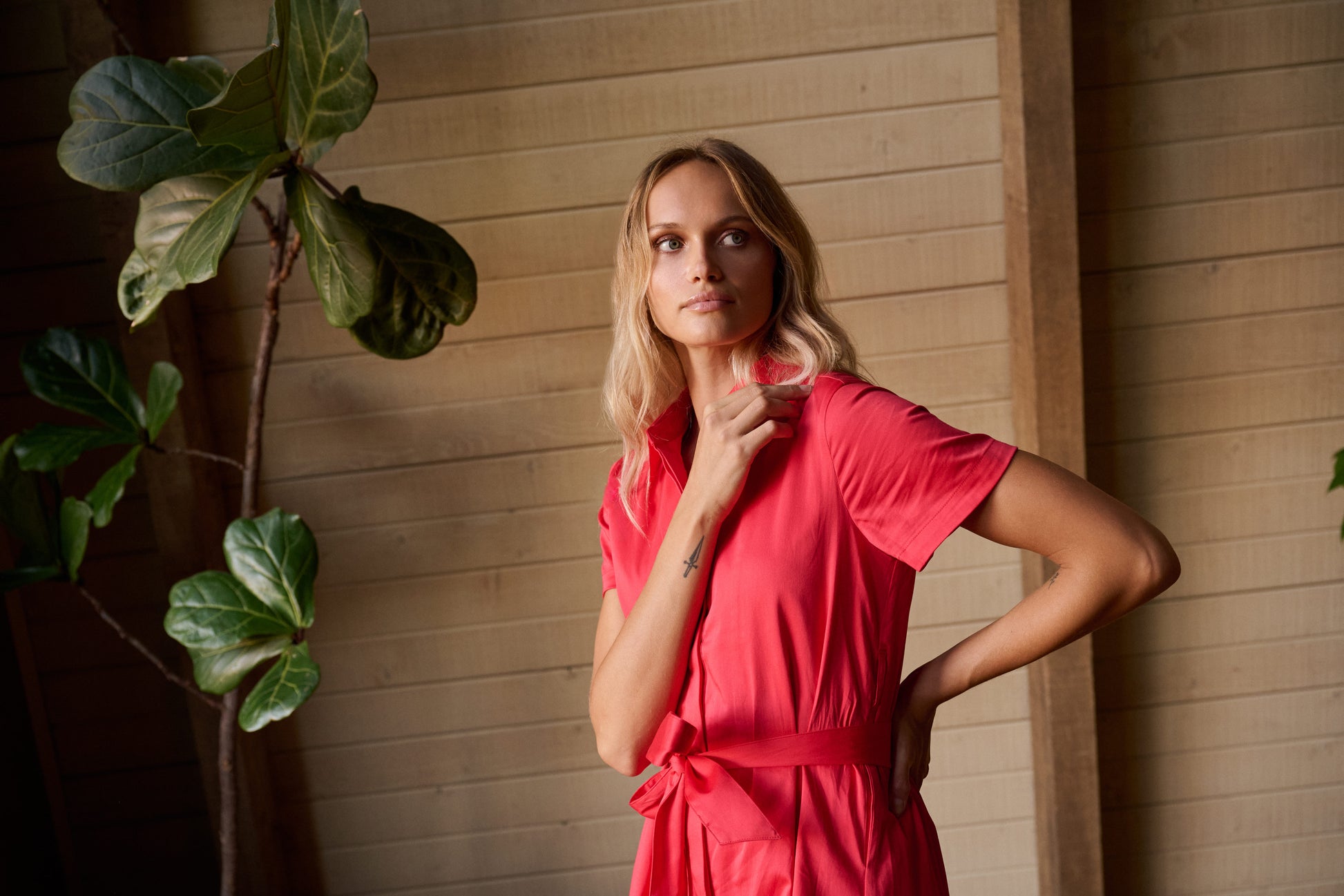 Turn heads and add a pop of color to your wardrobe with the Emma Kate in Cherry Bliss. This bold, cherry red dress exudes fun and sophistication, featuring a flattering V-neckline, a waist-defining belt, and flowing pleats for effortless movement. Whether you're headed to a brunch or a summer soirée, the Emma Kate promises to bring a fresh, vibrant energy to any occasion. Step into your new favorite dress—where style meets sweetness in perfect harmony.