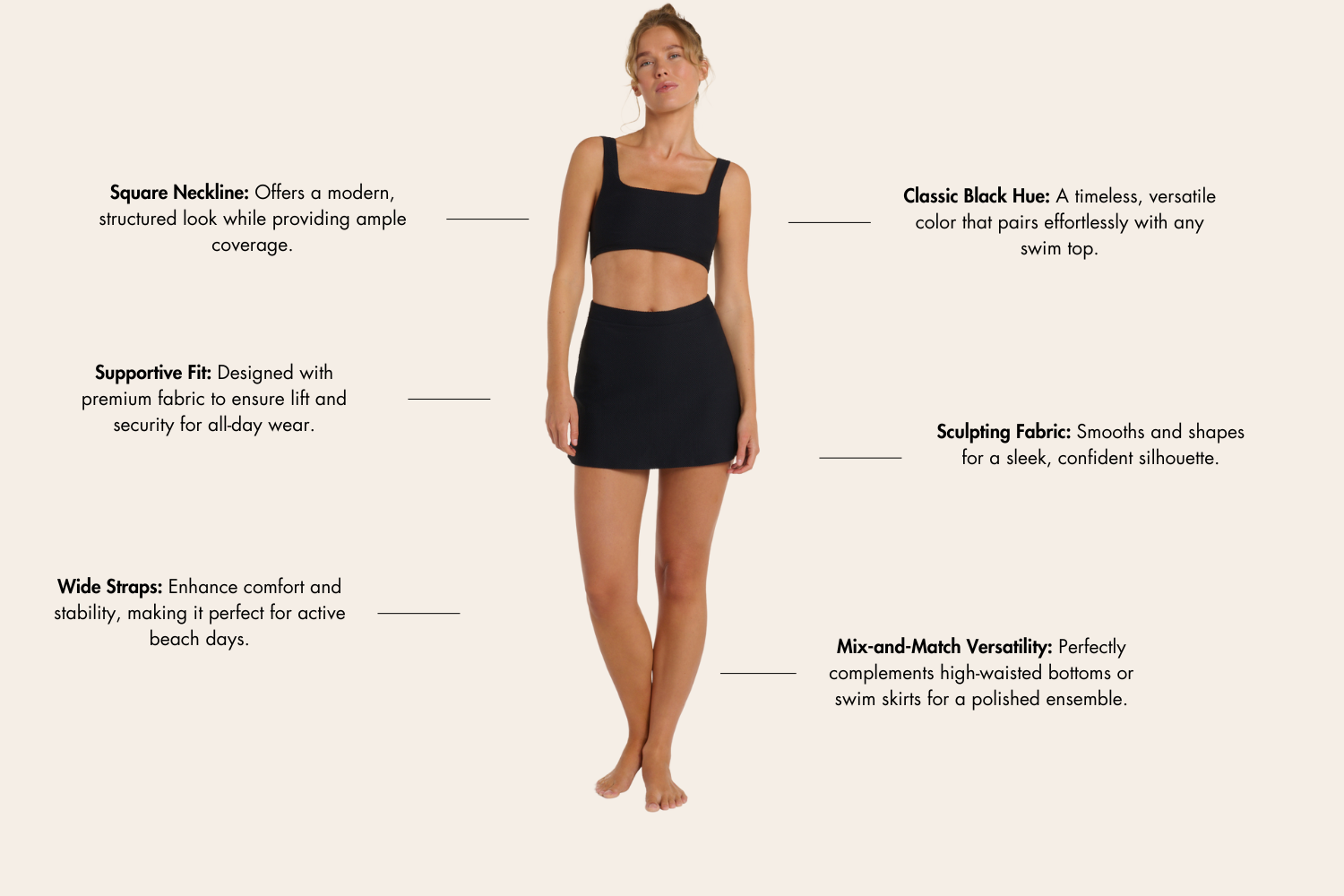 Elevate your beach look with the sleek and sophisticated Maggie Top in Black.