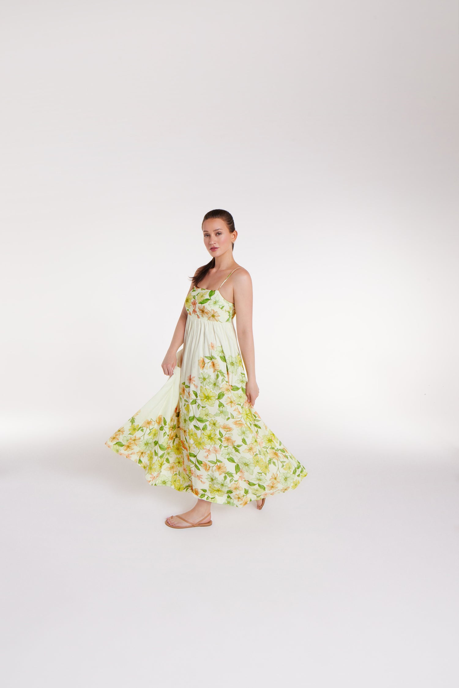 With its cascading floral paneling, this dress captures the essence of spring in full bloom. The delicate spaghetti straps and empire waist create a flattering, feminine silhouette, while the flowing maxi length offers graceful movement with every step. Made in our Sights of Spring fabric, the Emily Dress is a timeless blend of freshness and charm—designed to feel as lovely as it looks.