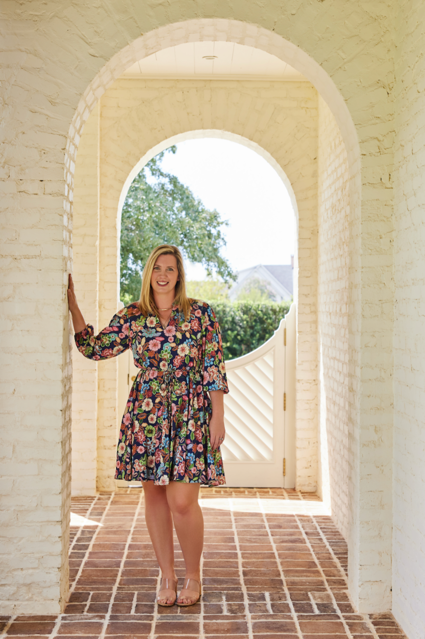Experience pure luxury with our Gayle Belted Collared Mini Dress, featuring a stunning blue floral print for a timeless and elegant look