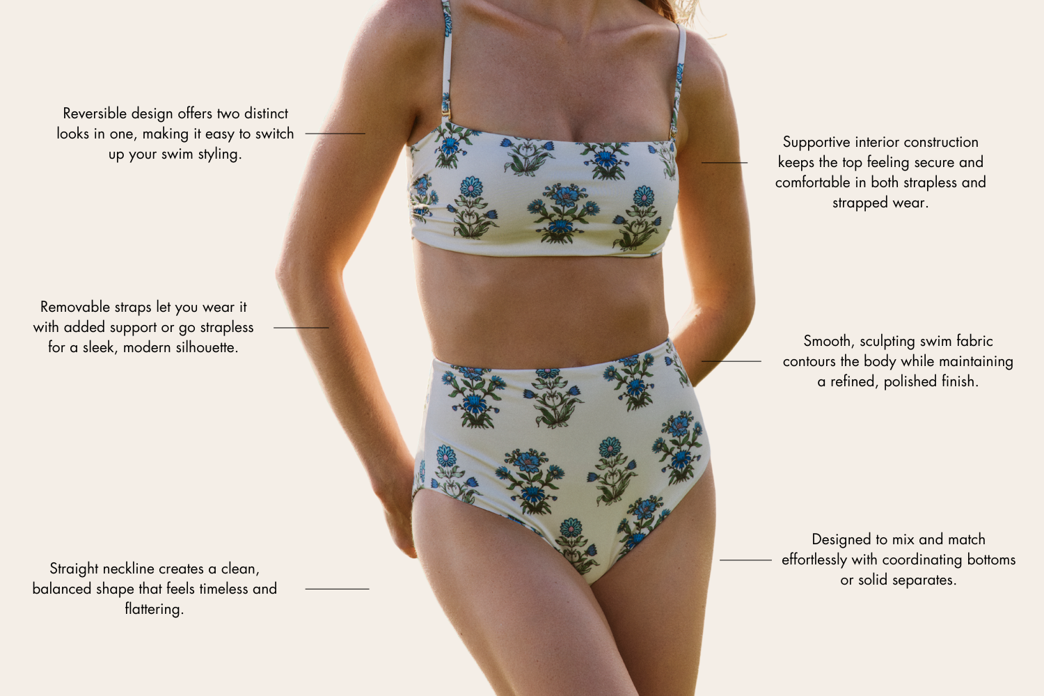 Designed with a clean, removable straps, straight neckline and a supportive, stay-put fit, this reversible bikini top gives you two looks in one without sacrificing comfort. The minimal silhouette feels modern and flattering, while the soft, supportive fabric makes it easy to wear all day. Flip it to change up your look—because your swim should work as hard as you do.